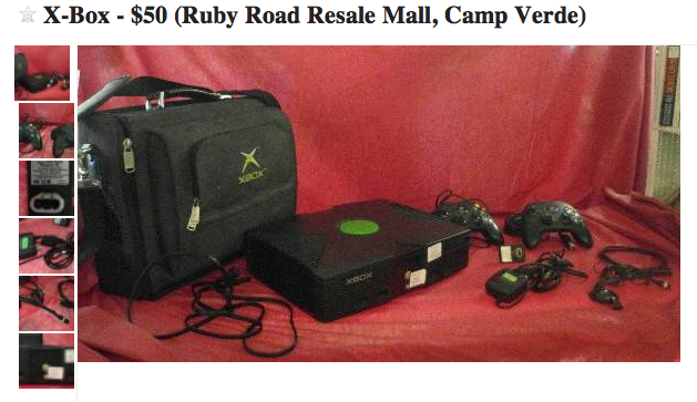 X-Box with 2 controllers, headset microphone, dvd playback kit, and carrying case.